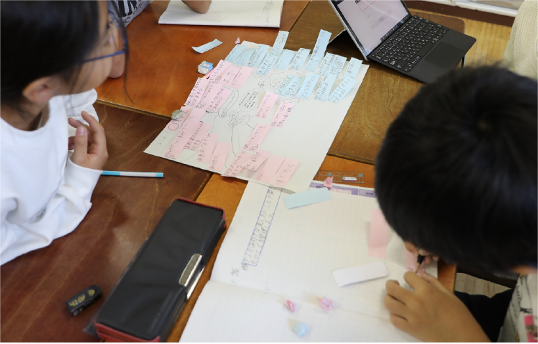 福祉施設「かんなみの杜」を訪問した経験を基に、「福祉」についての理解を深め、「みんなが幸せになる交流」を目標に、高齢者との交流を通じてどのように課題解決ができるかを、相手の立場に立って考えていく。活動のアイデアをウェビングマップなどの手法で整理し、提案を行い、これらのアイデアを高齢者に伝えて意見をもらいながら、プロジェクトを遂行していく。