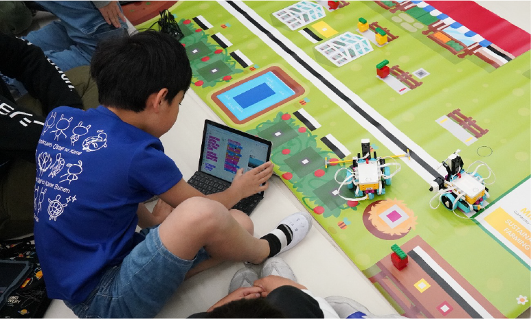 プログラミングやロボットに興味を持つ子どもたちを対象にした「タブレットクラブ」の活動を企業がリソースやナレッジを活用し全面的にサポート。全8回にわたるこの活動では、最先端の機材提供や講師による指導を通じて、子どもたち一人ひとりの探究を支援します。クラブ活動では、校内ロボットコンテストで高得点を目指す中で、プログラミングの工夫やロボットのハード面の改良に取り組みます。固定カリキュラムは設けず、活動中に生じる課題を子どもたちと共に解決していくプロセスを重視することで、創造的かつ実践的な学びが促されました。